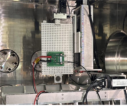 [그림 3] 우주 방사선 효과 측정 실험을 위해 진공 챔버에 설치된 우주용 반도체 중이온 빔 조사 스테이션 사진