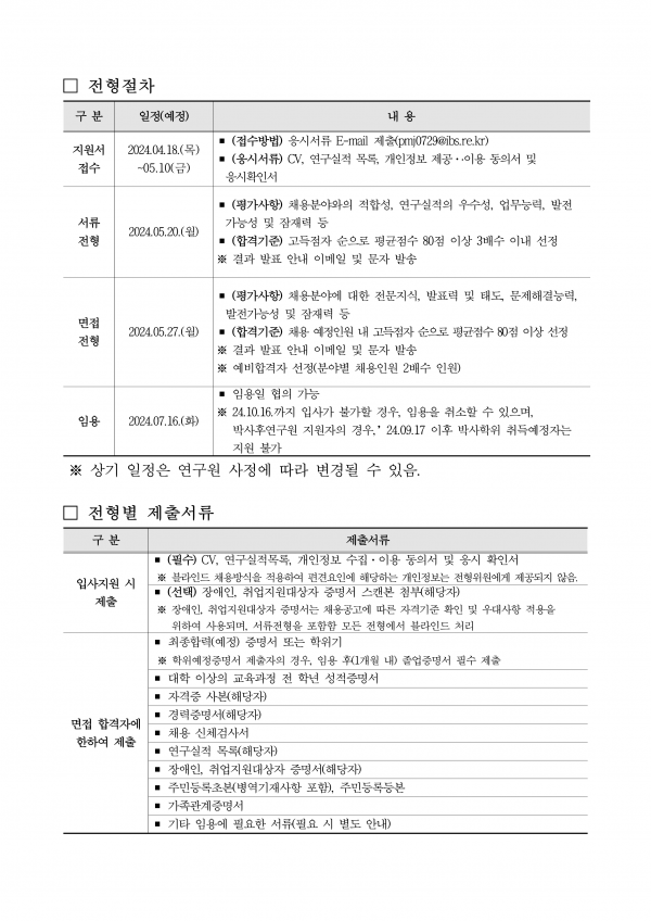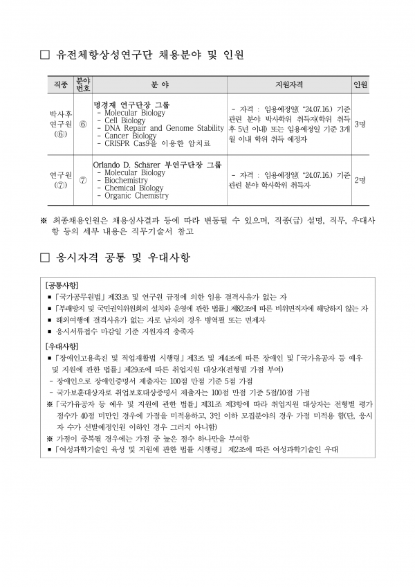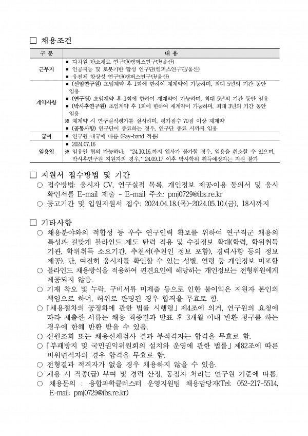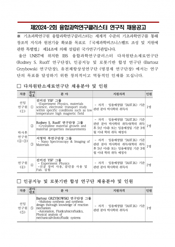 제2024-02회 융합과학연구클러스터 연구직 채용공고/CMCM Researcher Position Open Recruitment