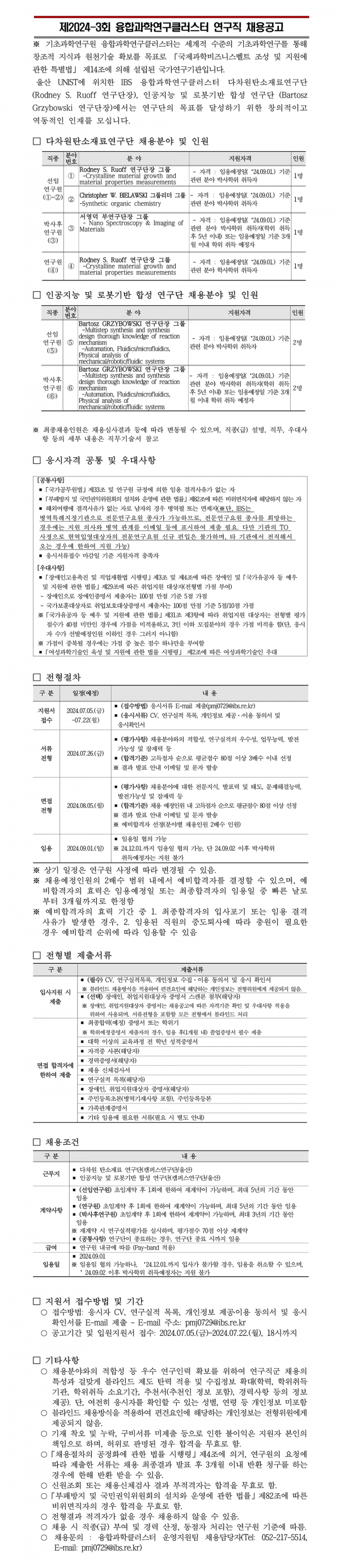 2024-03회 융합과학연구클러스터 연구직 채용공고/CMCM Researcher Position Open Recruitment