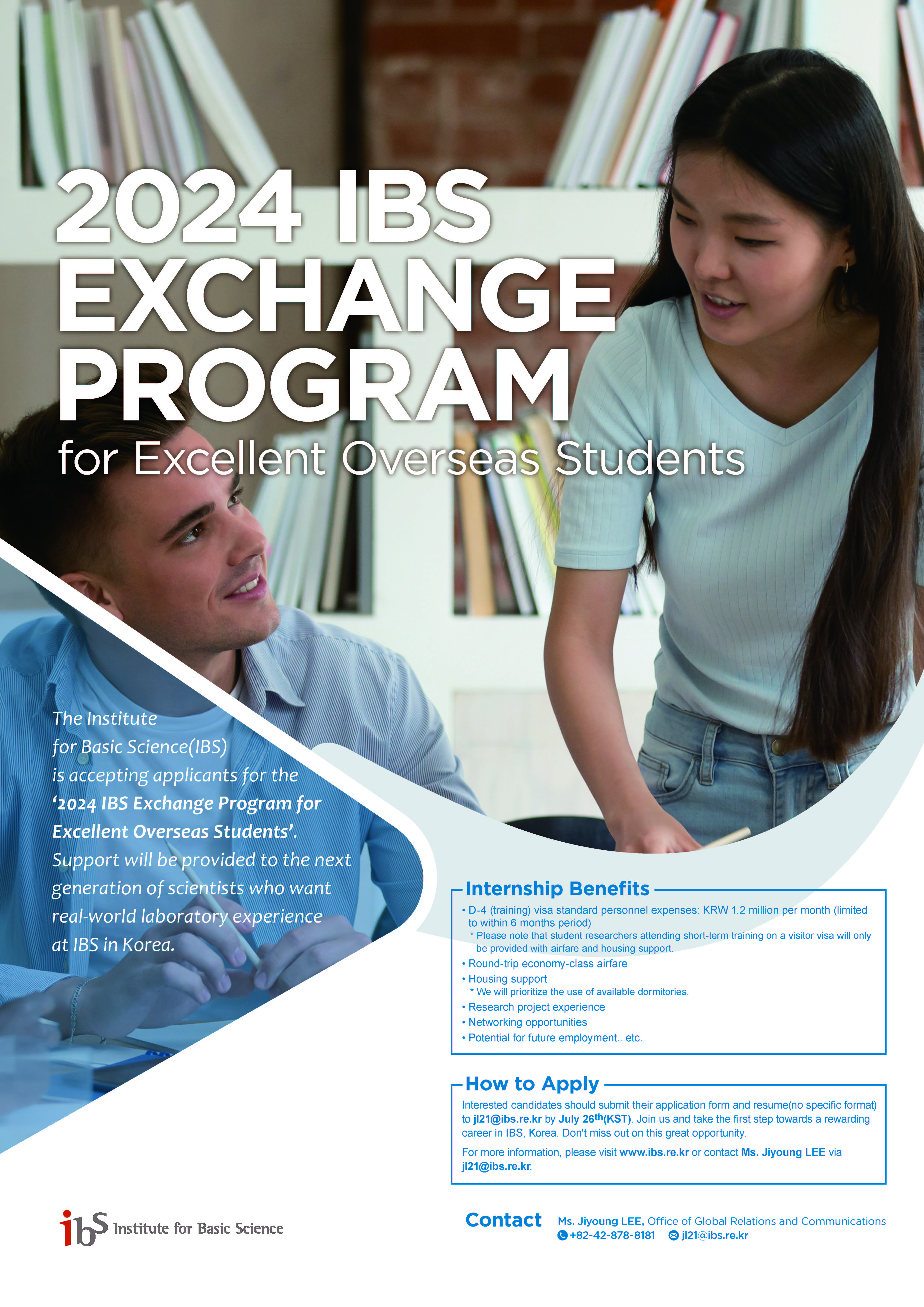 The Institute for Basic Science (IBS) is accepting applicants for the ‘2024 IBS Exchange Program for Excellent Overseas Students’.