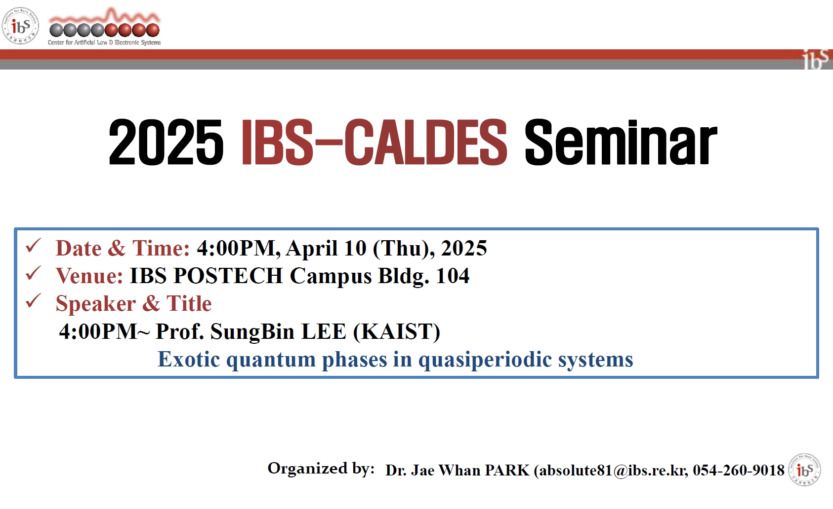 Prof.Sungbin Lee (KAIST)