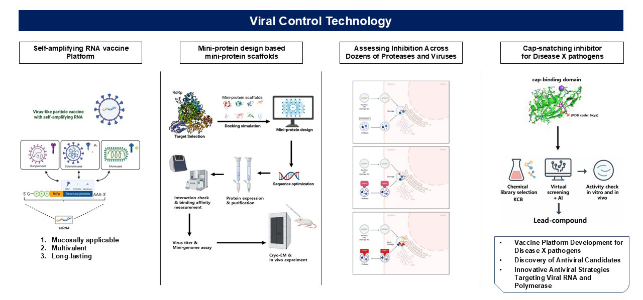 The Viral Control Technology Team is committed to developing universal countermeasures against emerging viral threats. Our mission is to create next-generation vaccine platforms and broad-spectrum antivirals that target key stages of the viral life cycle. By integrating multiple approaches, we translate fundamental discoveries into practical vaccines and therapeutics, strengthening preparedness for future pandemics.